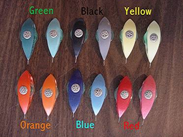The dye colors can be dropped in the resin mix to provide a swirled appearance. Each shuttle done this way has a different pattern.