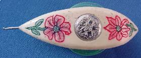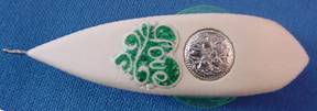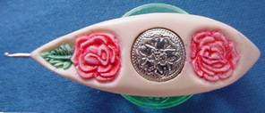 Small trinkets can be placed in the mold to capture the design in one end or the other of the shuttle. These types of shuttles are limited to availability of "trinkets" that can fit within the shuttle's body. The embedded single shuttles are $ 40.00 each.