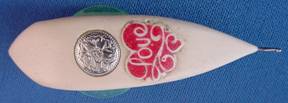 Raised Love-heart with red coral inlay Raised Love-heart with malachite inlay