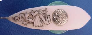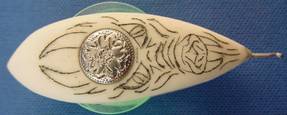 The resin shuttles can be scrimshawed (needle and/or knife etching). The following are examples and exact replication may not be available. Contact Randy for design considerations.